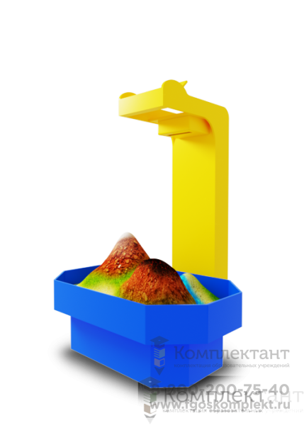 Песочница надёжно спроектирована и покрыта гипоаллергенной краской. Благодаря удобной конструкции (вся техника находится в специальной стойке, поэтому нет необходимости в дополнительных стенках), вокруг песочницы одновременно может разместиться до 10 детей. Высота от пола до бортика 516 см. Это значит, что ребята могут расположиться вокруг на стульчиках или играть стоя.