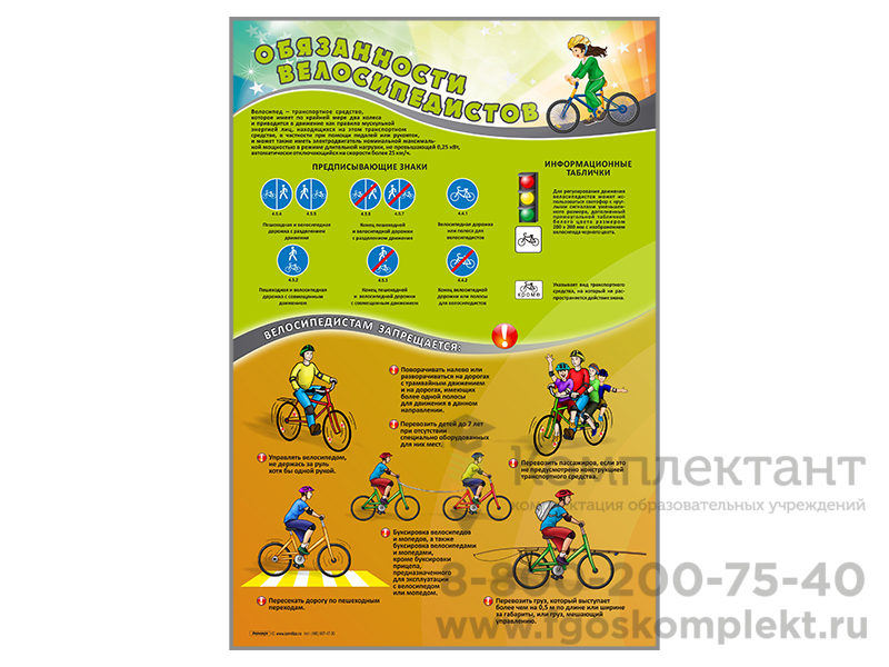 Стенды представляют собой информационные панели, на которых размещены правила дорожного движения для велосипедистов и их обязанности.