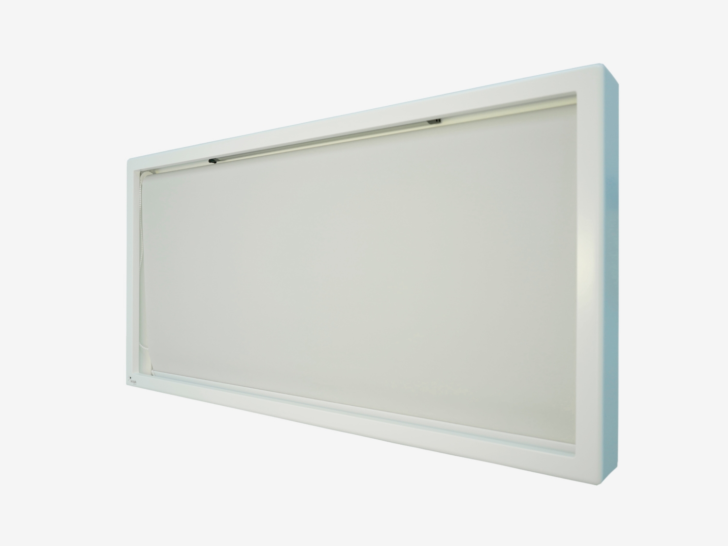 По рекомендациям практикующих специалистов мы встроили в зеркало светодиодную подсветку с мягким теплым светом и дополнили оборудование рулонной шторой. Конструкция крепится к стене или к мобильной стойке с помощью кронштейна.