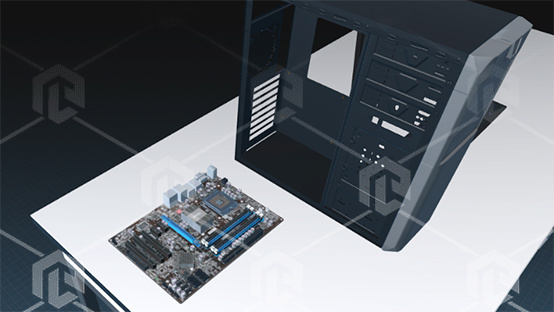Комплекс позволяет виртуально собирать системный блок ЭВМ из компонентов: материнская плата, процессор, оперативная память, жёсткий диск, видеокарта, CD-привод, дисковод, звуковая карта.